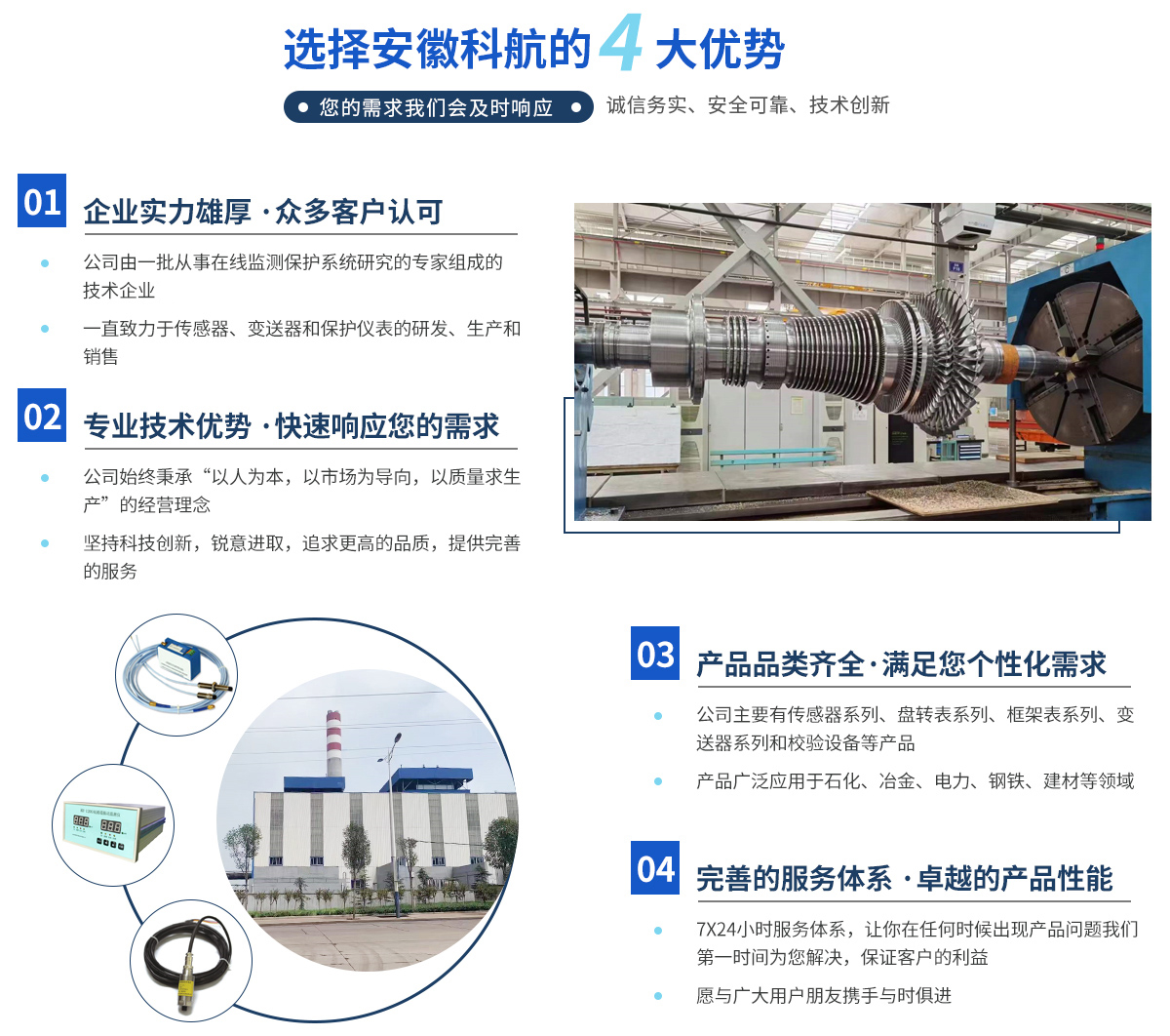 安徽科航儀器儀表有限公司由一批從事在線監(jiān)測(cè)保護(hù)系統(tǒng)研究的專家組成的技術(shù)企業(yè)。自成立以來,一直致力于傳感器、變送器和保護(hù)儀表的研發(fā)、生產(chǎn)和銷售。產(chǎn)品廣泛應(yīng)用于石化、冶金、電力、鋼鐵、建材等領(lǐng)域,是汽輪機(jī)組、水輪機(jī)組、壓縮機(jī)、制氧機(jī)、鼓風(fēng)機(jī)、水泵等大型機(jī)械不可缺少的在線監(jiān)測(cè)保護(hù)設(shè)備。公司主要有傳感器系列、盤轉(zhuǎn)表系列、框架表系列、變送器系列和校驗(yàn)設(shè)備等產(chǎn)品。 公司始終秉承“以人為本,以市場(chǎng)為導(dǎo)向,以質(zhì)量...